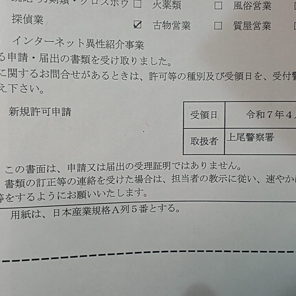 上尾警察署に古物商の営業許可新規申請に行きました