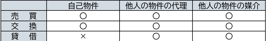 宅地建物取引業とは、不特定多数の人を相手方として、宅地又は建物について、下表に掲げる行為を反復又は継続して行い、社会通念上事業の遂行とみることができる程度の行為をいいます。